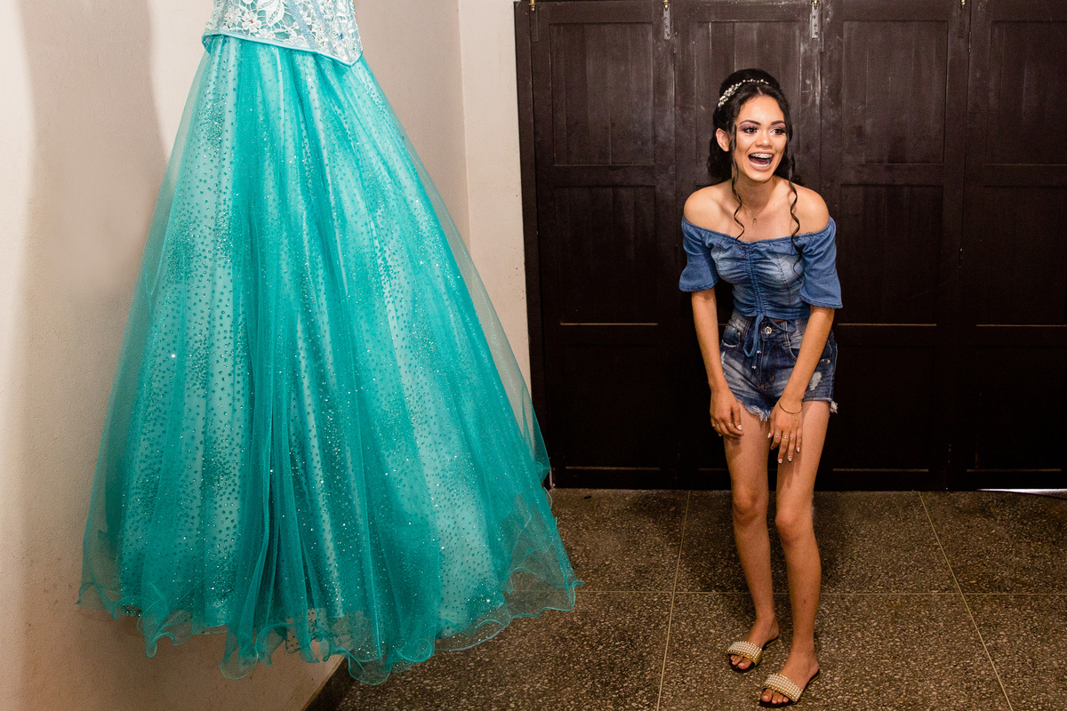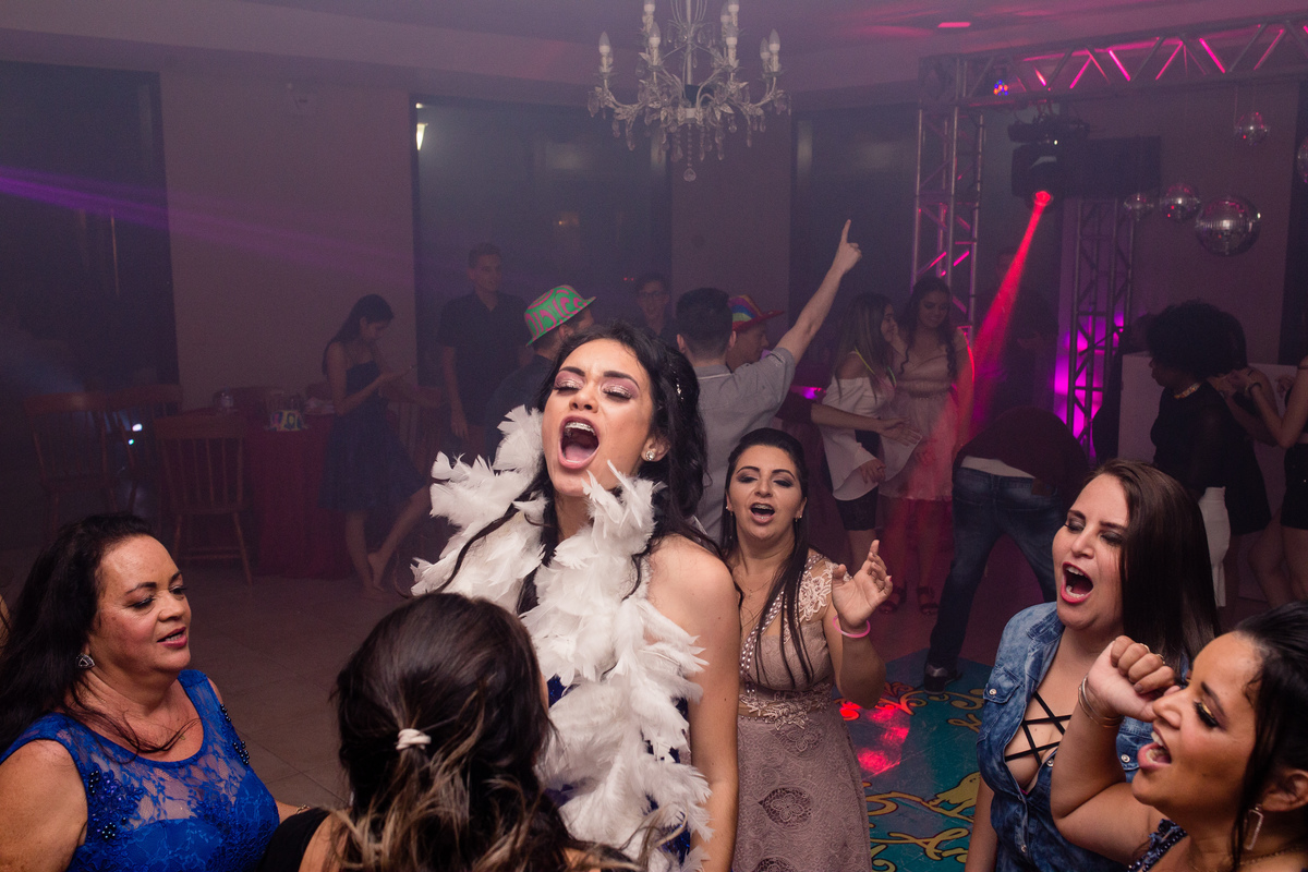 Uma aniversariante empolgada e cheia de energia foi o que encontrei no salão...no comando da playlist que animava elas, horas antes da festa!