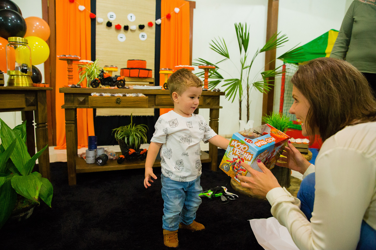 Nosso aniversariante ama motos, elas estão sempre com ele, então não poderiam faltar em sua festa de 2 anos....