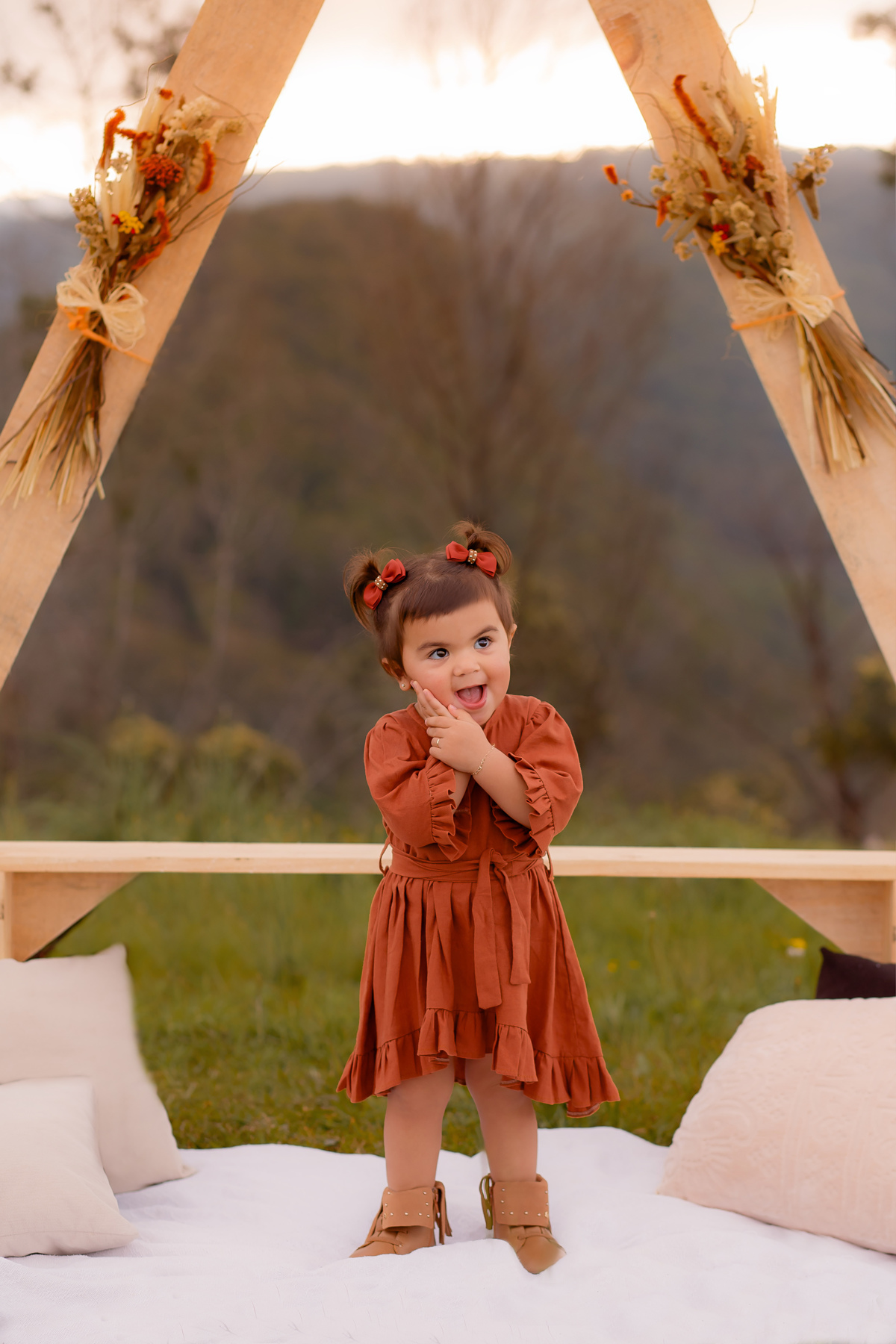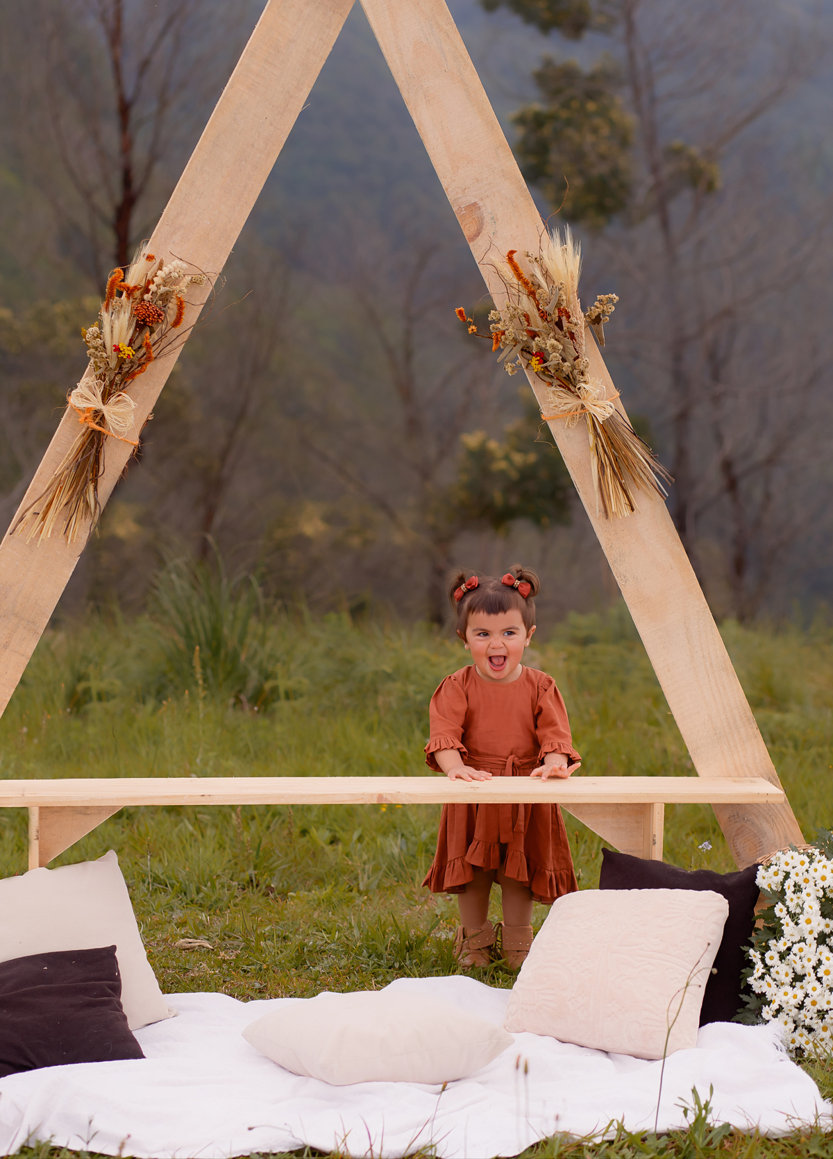 A mãe se virou nos 30 e providenciou um cenário especial para esse ensaio,o pai ajudou a transportar e montar, e não podia ter ficado diferente